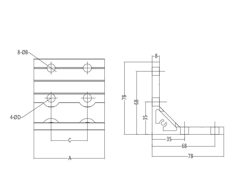 直角支架是(shi)從擠壓型(xing)材上(shang)截取(qu)料段,經鉆孔加工(gong)而成。表面銀白陽極氧化(端面未(wei)氧化),連接強(qiang)度高。靈活性和通用(yong)性能好,安(an)裝簡單方便。主要用(yong)于型(xing)材的T型(xing)、L型(xing)、或十字連接。注:可根據客戶需要進行特殊加工(gong)。