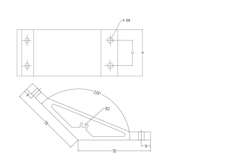 135度(du)支(zhi)架是從擠(ji)壓型(xing)材(cai)上截取料段,經鉆孔加工(gong)而(er)成。表面(mian)銀白陽極氧(yang)化(hua)(端(duan)面(mian)未氧(yang)化(hua)),連接強度(du)高(gao)。靈(ling)活性和通(tong)用(yong)性能好,安裝簡單方便。主要用(yong)于型(xing)材(cai)的135度(du)連接。