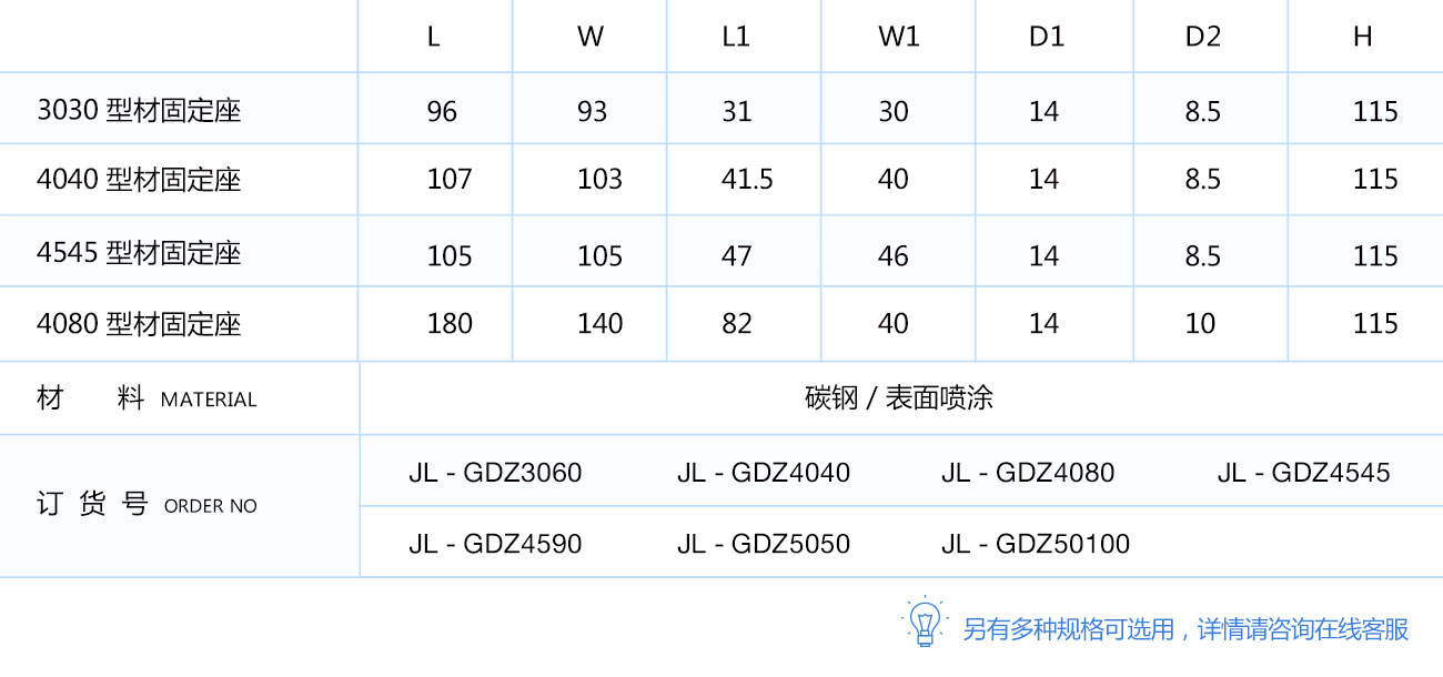 用(yong)(yong)型材固定座用(yong)(yong)于型材與地面或(huo)平臺之間的支撐,可用(yong)(yong)膨脹螺栓置于地下達到固定作用(yong)(yong)。