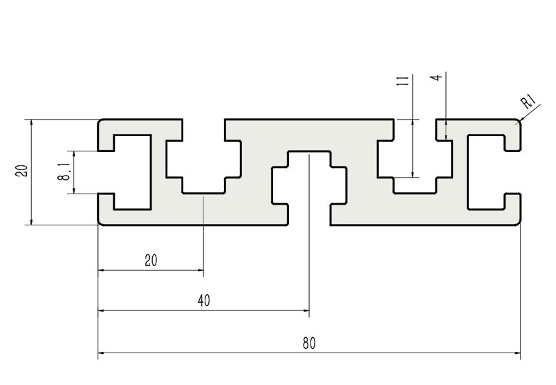 JL-8-2080G,8mm 槽寬工業鋁型材系列