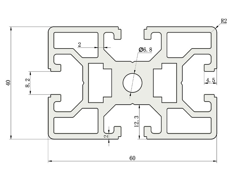 適用(yong)(yong)于應力及強(qiang)度較(jiao)大的(de)框架組合(he)結構,它的(de)外型采用(yong)(yong)圓角(jiao)過渡,表(biao)面經過陽極氧化處理,高雅(ya)美觀并抗腐(fu)蝕,它通常采用(yong)(yong)M8X20高強(qiang)度專(zhuan)用(yong)(yong)螺栓加彈性扣(kou)件的(de)內(nei)部(bu)連接方(fang)式(shi),堅固而又可靠,是工業框架應用(yong)(yong)較(jiao)為(wei)廣泛的(de)型材(cai)之一。