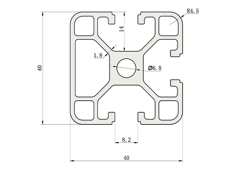 適用(yong)于應力及強度(du)較大(da)的框架組合結構,它(ta)的外(wai)型(xing)采用(yong)圓角過(guo)渡,表面經過(guo)陽極氧(yang)化處(chu)理,高雅美觀并抗腐蝕,它(ta)通常采用(yong)M8X20高強度(du)專用(yong)螺栓加彈性扣(kou)件的內部連(lian)接方式(shi),堅固而又可靠,是工業框架應用(yong)較為廣泛的型(xing)材(cai)之一。