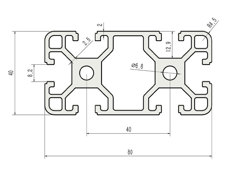 適用于應力及(ji)強度(du)較(jiao)大的框架組合結構(gou),它的外型(xing)采用圓角過(guo)渡(du),表面經(jing)過(guo)陽極氧(yang)化處理,高雅(ya)美觀并抗(kang)腐蝕,它通常采用M8X20高強度(du)專用螺栓加彈性扣(kou)件的內部連接方(fang)式,堅(jian)固而又可(ke)靠,是工業(ye)框架應用較(jiao)為廣泛的型(xing)材之一(yi)。