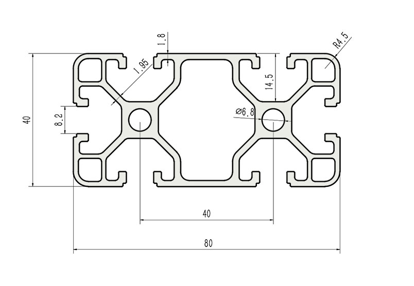 適用(yong)于應(ying)力及強度較(jiao)大的(de)框架組合結構(gou),它的(de)外(wai)型采用(yong)圓(yuan)角過渡,表面經過陽(yang)極氧(yang)化處理(li),高(gao)雅美觀并抗(kang)腐蝕(shi),它通(tong)常采用(yong)M8X20高(gao)強度專用(yong)螺(luo)栓加彈性扣件(jian)的(de)內(nei)部連接方式,堅固而又可(ke)靠,是(shi)工業框架應(ying)用(yong)較(jiao)為廣泛(fan)的(de)型材之一。