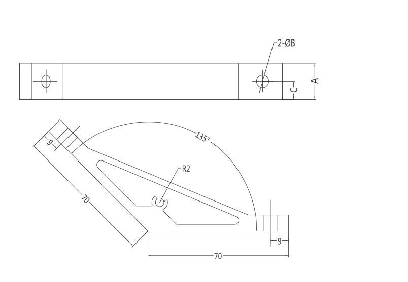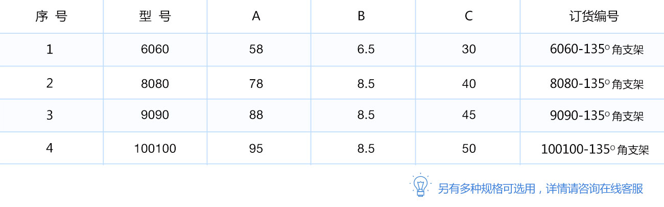 135度(du)支(zhi)架是從擠(ji)壓型(xing)材(cai)上截取料段,經鉆孔加工(gong)而(er)成。表面(mian)銀白陽極氧(yang)化(hua)(端(duan)面(mian)未氧(yang)化(hua)),連接強度(du)高(gao)。靈(ling)活性和通(tong)用(yong)性能好,安裝簡單方便。主要用(yong)于型(xing)材(cai)的135度(du)連接。